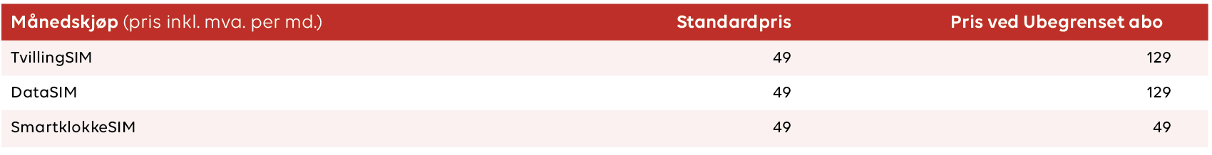 Priser for Ansattkjøp